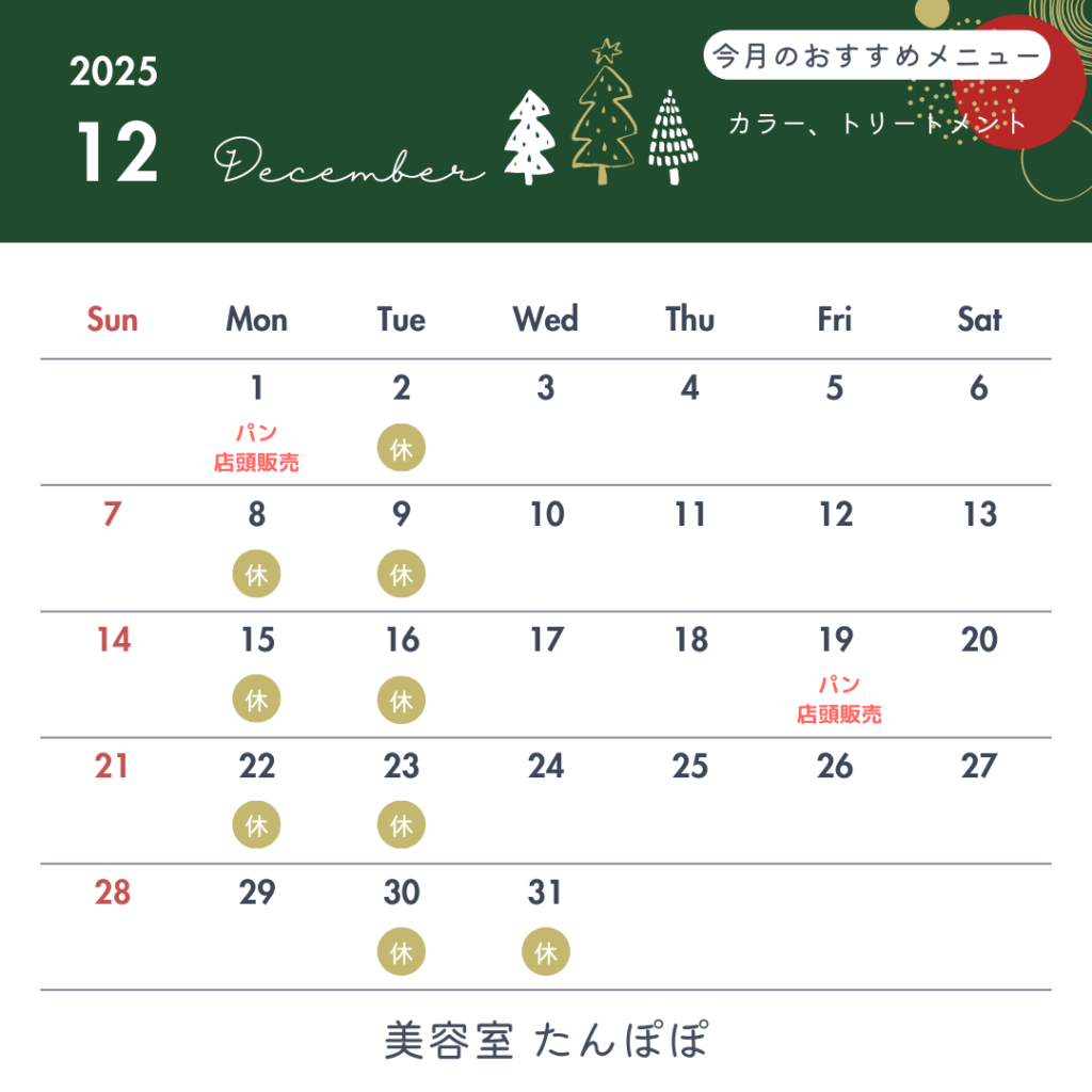 30日(火)、31日(水)、1月1日(木)、2日(金)、3日(土)