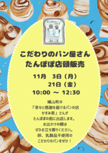 1日(月) 10:00 ~ 12:30 ”幸せと感謝を届けるパンの店 かすみ草”さん (鳩山町)